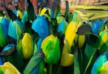 На підтримку України місцева компанія виростила однойменні тюльпани, а в найбільшому парку країни галявини із сонячними та небесними квітами...