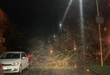 В Ужгороді вночі 27 березня стався сильний буревій. У місті повалені дерева, лавки пошкоджено деякі дахи.