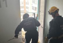У поліції показали відео із нагрудних камер, на якому видно, що відбувалося у перші хвилини після влучання уламків ракети по багатоповерхівці у Солом'янському районі...