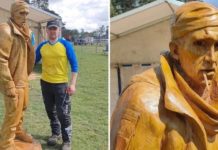Захисника Олександра Мацієвського, якого розстріляли російські загарбники після слів "Слава Україні", увіковічили у скульптурі з дерева. Загиблого Героя майстерно зобразив скульптор Микола Глеба.