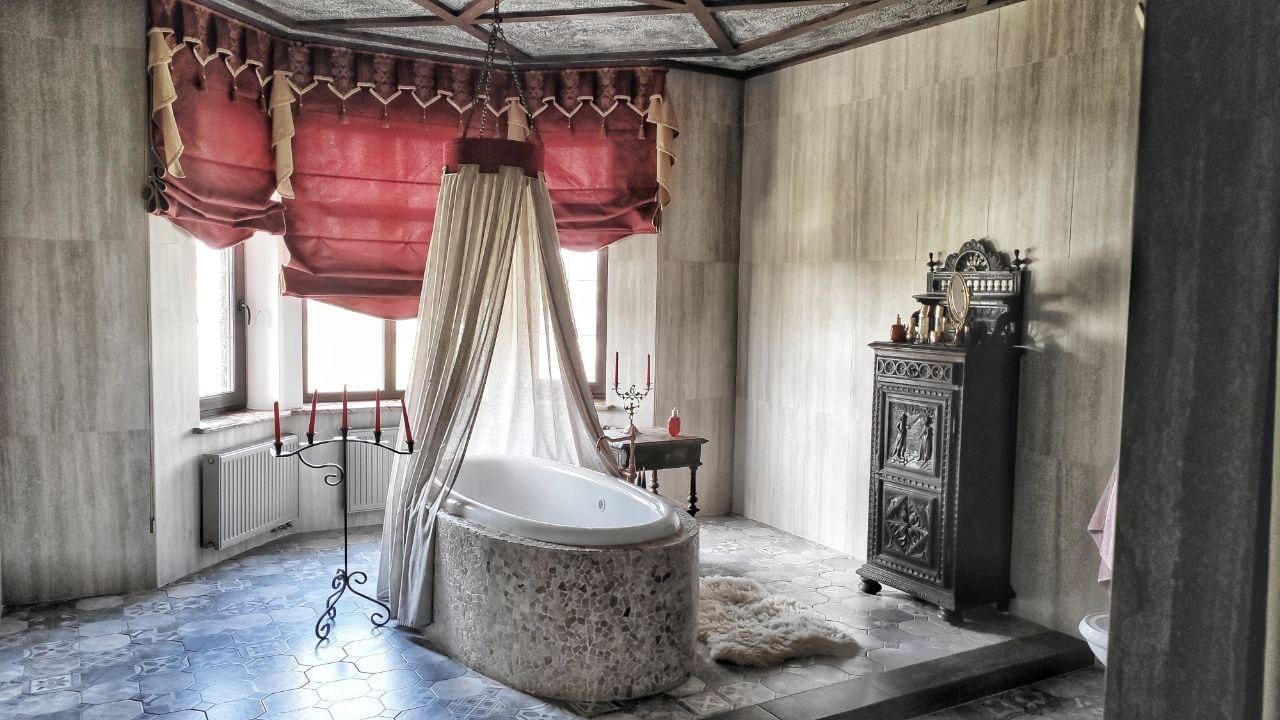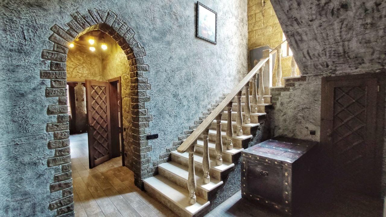 “Відкриваючи двері розкішного, величного і трохи таємничого замку, ми потрапляємо в середньовіччя… нас зустрічають величаві 12-метрові стелі холу, антикварні меблі французького походження (які доставлялися в Україну кораблями”, – сказано в оголошенні.