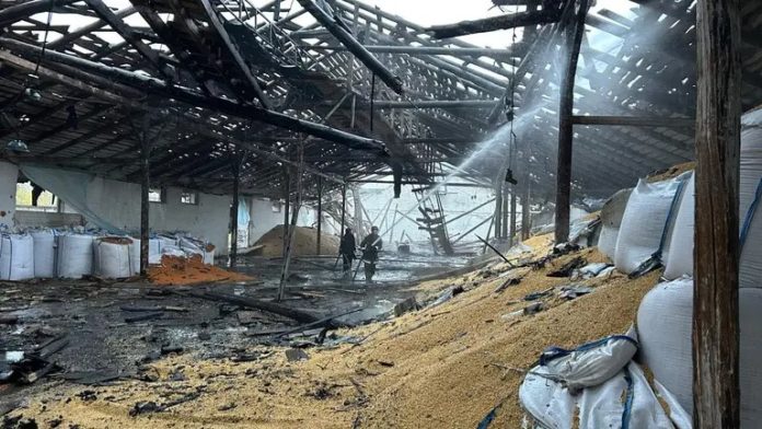 За інформацією Селіверстова, ворожі безпілотники влучили по одному з приміщень аграрного підприємства, де зберігалось зерно.