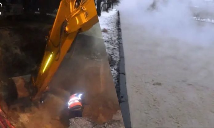 За даними правоохоронців, 2 січня на проспекті Валерія Лобановського у Києві стався прорив труби системи централізованого опалення. Гаряча вода вилилася на тротуари та проїжджу частину, утворивши провалля.