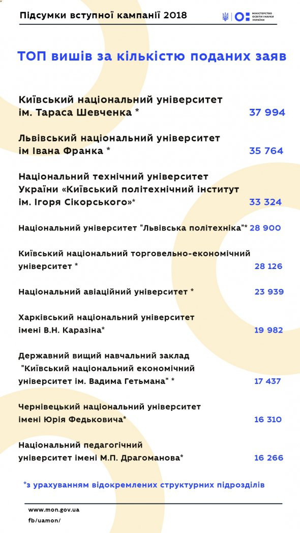 “Хочу сказати, що це не є правдивим. Звичайно, провідні столичні виші користуються неабиякою популярністю, але до десятки університетів поряд зі столичними закладами також увійшли львівські, харківські та чернівецькі вузи”, – сказав керівник директорату.