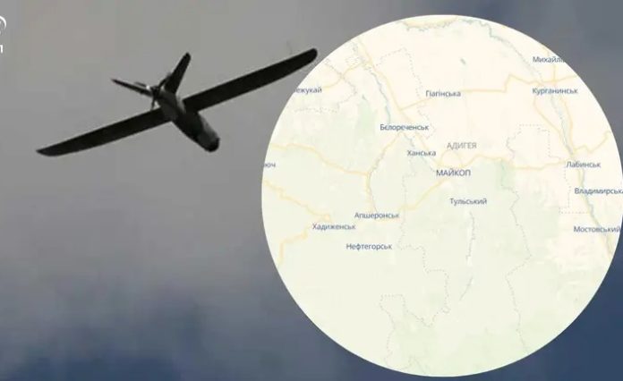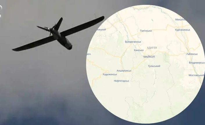 У мережі припускали, що під удар дронів потрапив військовий аеродром “Ханська”, розташований за 10 – 15 кілометрів на південний захід від міста Майкоп.